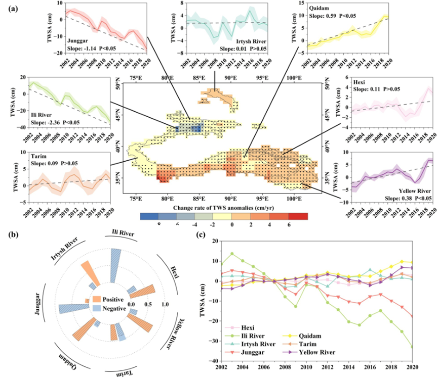 该论文融合了GRACE/GRACE-FO卫星重力数据与多源遥感数据,系统分析了近二十年中国西北地区水塔单元的陆地水储量变化及其驱动机制,为干旱地区流域水资源战略优化提供了理论依据。我校2023级博士生冯家媛为论文第一作者,通讯作者是宋进喜教授,我校为第一完成单位。